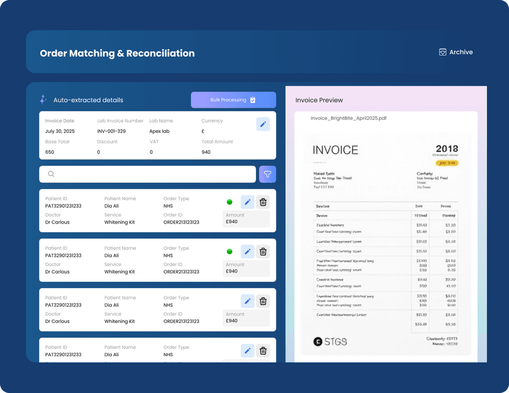 With Smile Genius, you can stop cash flow surprises: spend less time on admin and more on production, resolve payment issues instantly, and build lasting trust with clinics through transparent, reliable billing.